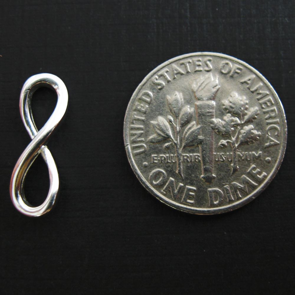Material: Solid Genuine .925 Sterling Silver. Shape: Infinity charmMeasurement: 15mm by 5mm.Weight: 0.6 gram per pieceQuantity: 1 pc