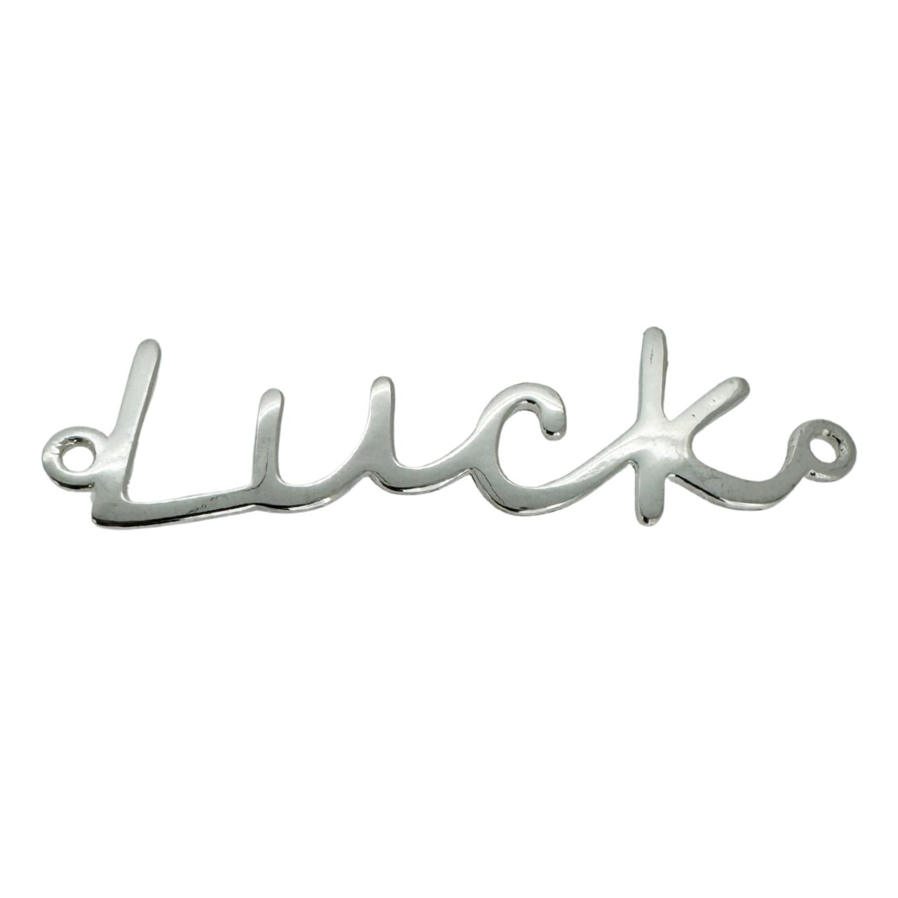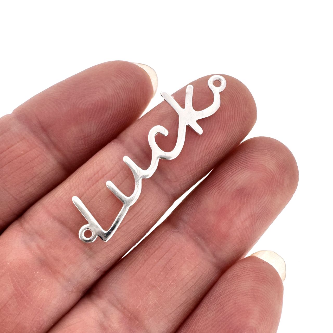 Material: Solid Genuine .925 Sterling Silver. Shape: Luck, luck written in scriptMeasurement: 33mm wide by 9mm, .8mm thick, letters are 1.2-1.4mm thick. 19 gauge jump rings or smaller will be suitable for the connector rings. Quantity: per 1 piece