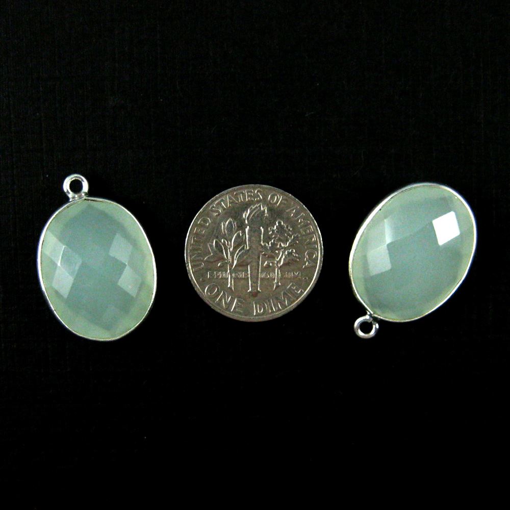 Add to compare list 18K Gold Over Sterling Silver Bezel Gemstone Pendant - 14x18mm Faceted Oval - Blue Chalcedony SKU : 201103-BCH Log In for Wholesale Prices