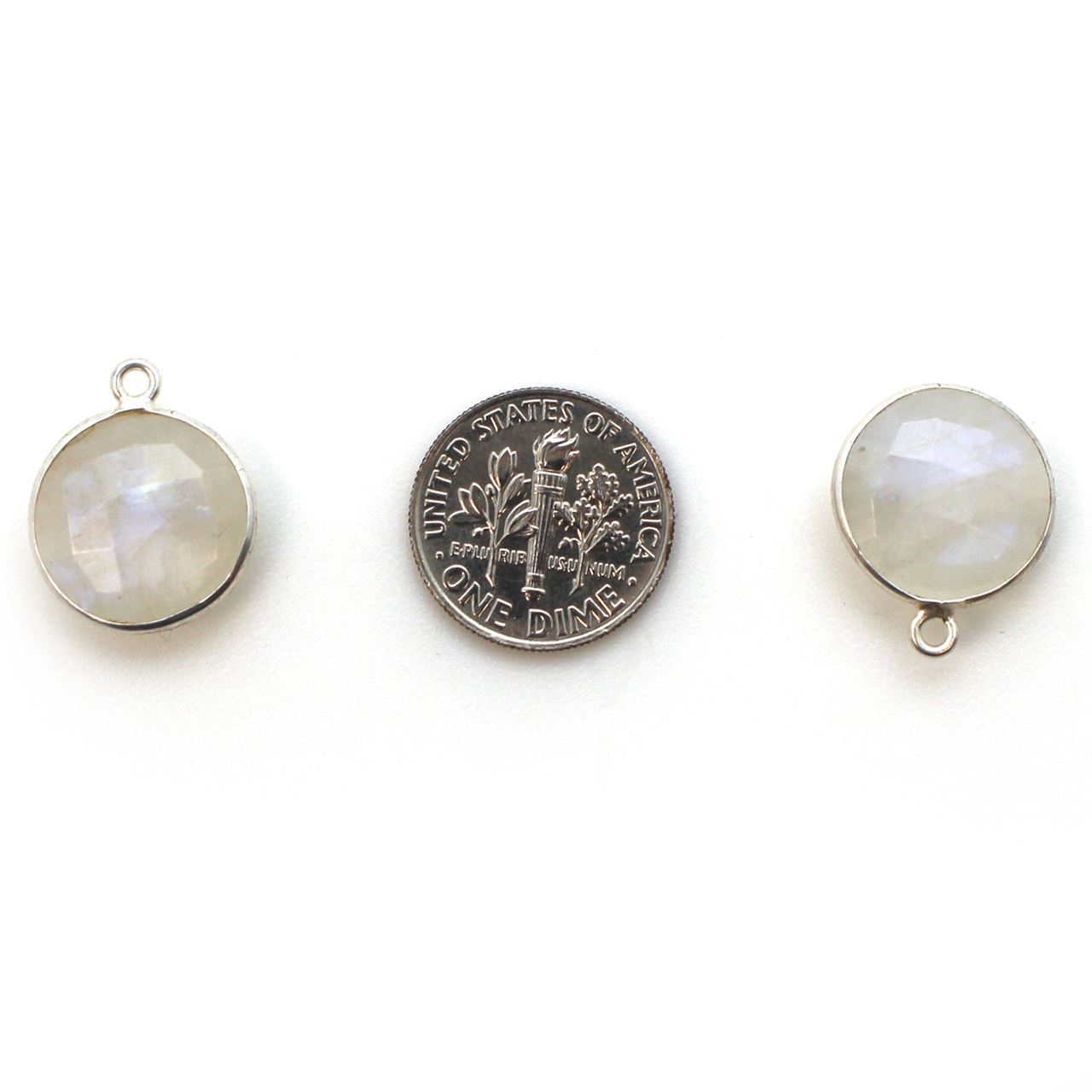Bezel Gem Pendant-Sterling Silver-14mm Faceted Coin- Moonstone
