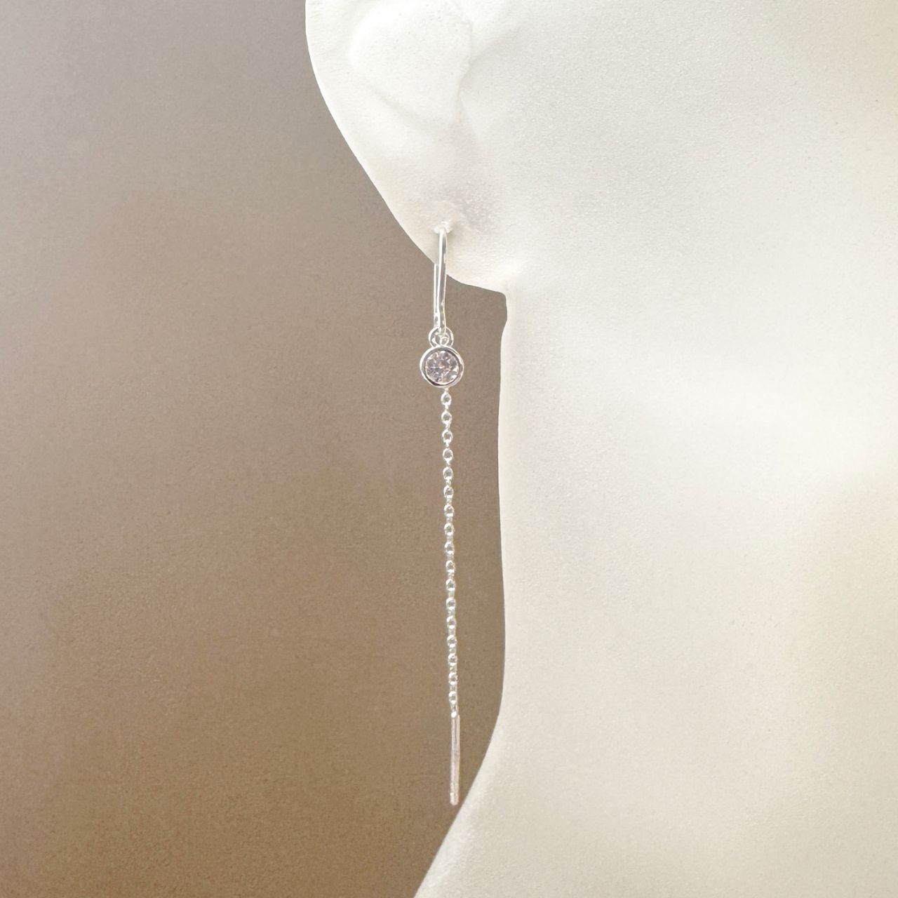 Material: Genuine Sterling SilverStyle: Earring Hooks with Open Eye End and 50mm Chain ThreadMeasurement: Stone is 4mm.Quantity: sold per pair