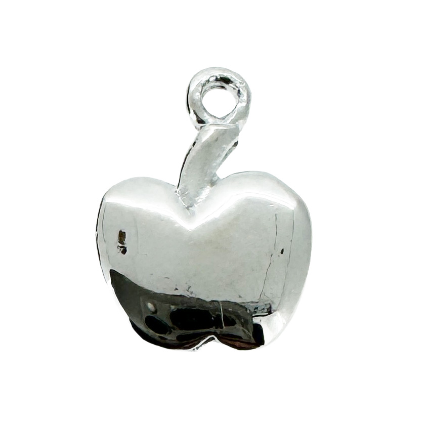 Material: 925 Sterling silver Shape: Tiny apple shape charm or pendant Component size: 8mm wide, 12mm with ring. 1.5mm thickness.