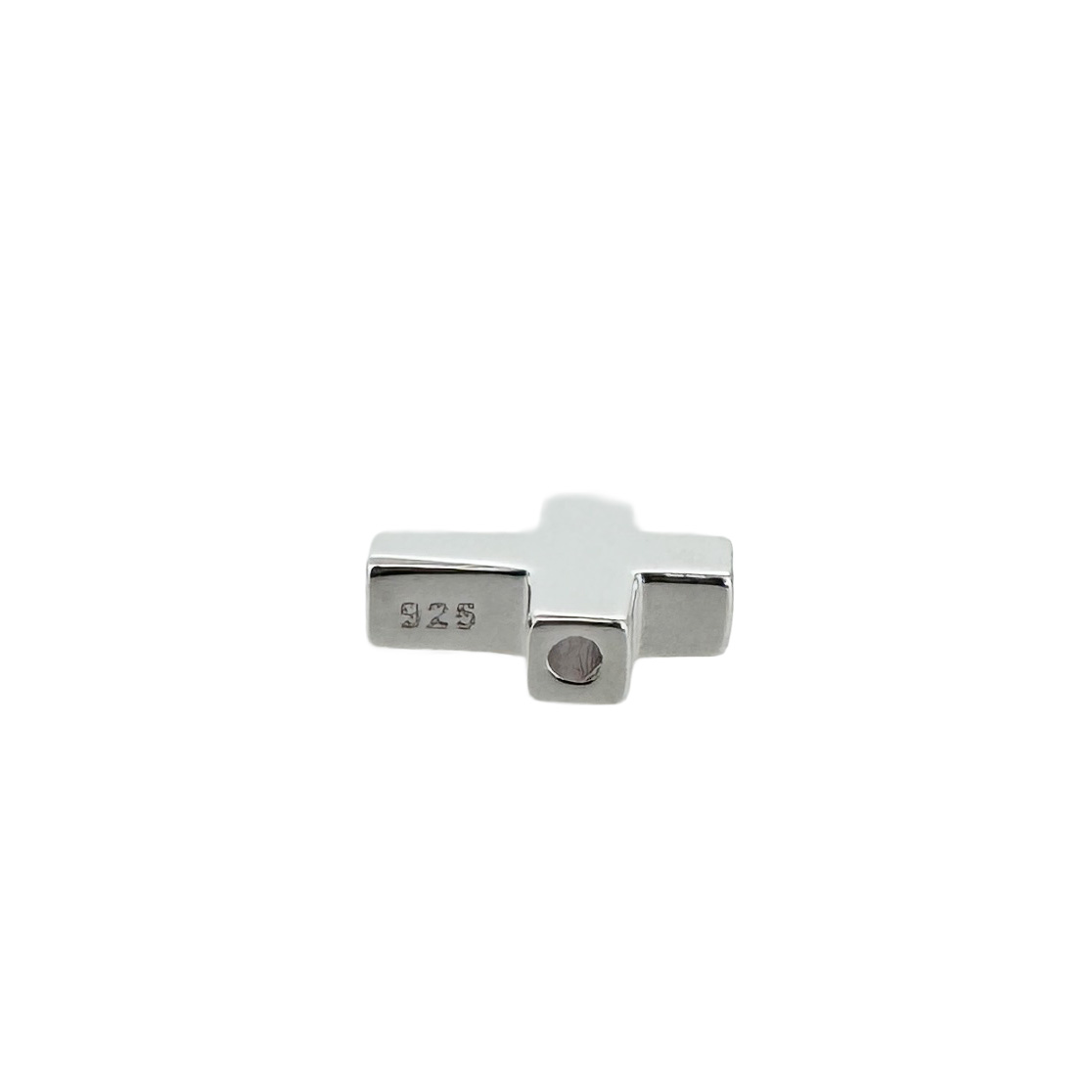 Material: 925 Sterling silver, 925 mark is on the lower sideStyle: Sterling Silver tiny cross connectorSize: 7.7mm long, 6.3mm wide and 2mm thick Hole: The hole is about 0.8mm wide, and is suitable for 22 gauge (0.6 mm) or smaller size wire, string, cord etc. Quantity: 1 pieceWeight: 0.52 grams per piece