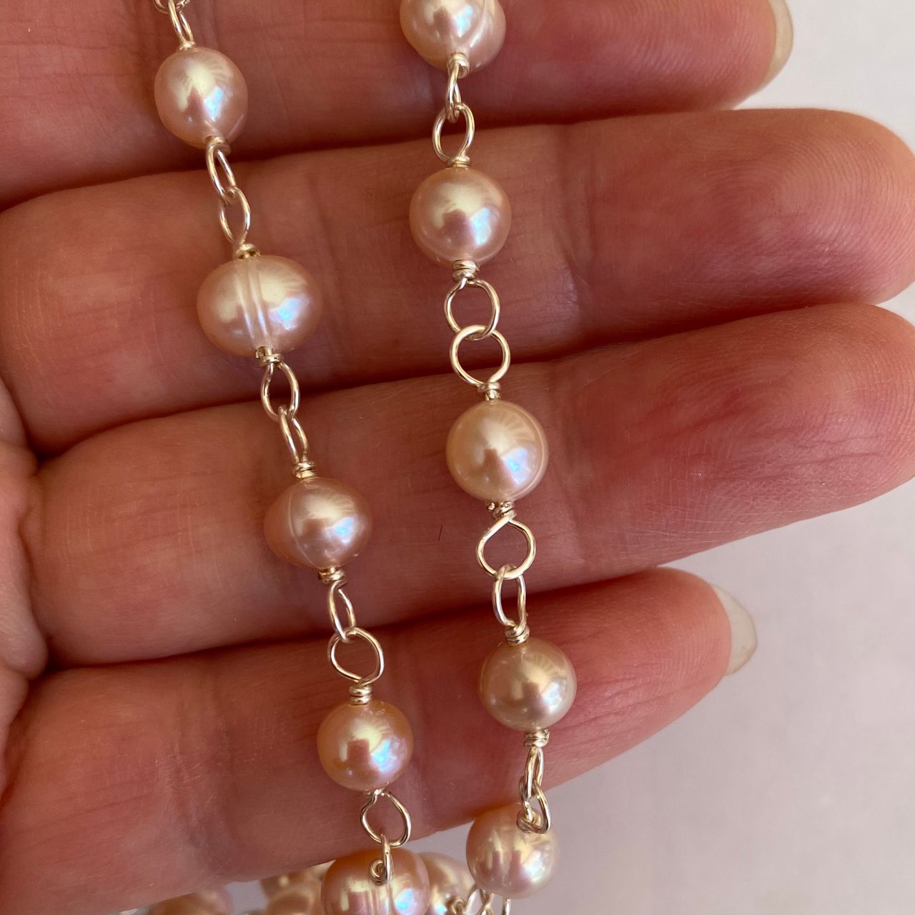 Quantity: One foot of wire wrapped pearls